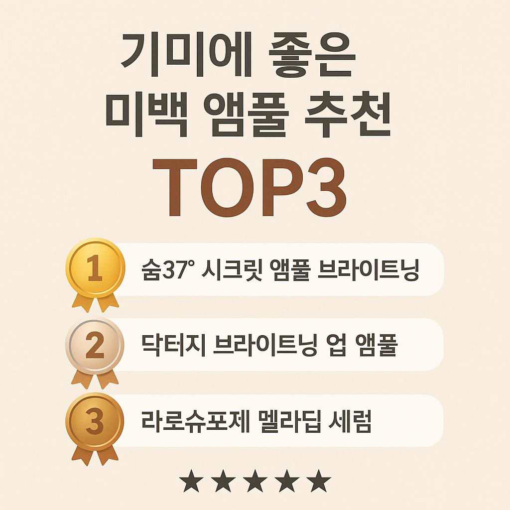 | 🥇 1위 | 숨37 시크릿 앰풀 브라이트닝 | 발효 미백 + 고급 사용감 + 저자극 | 약 60,000원대 |